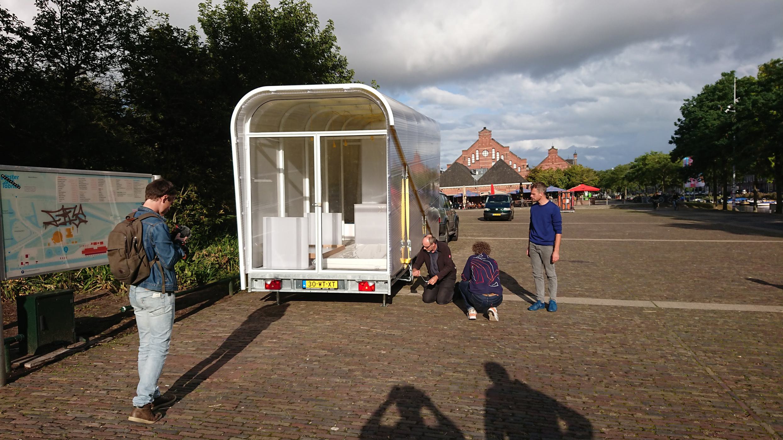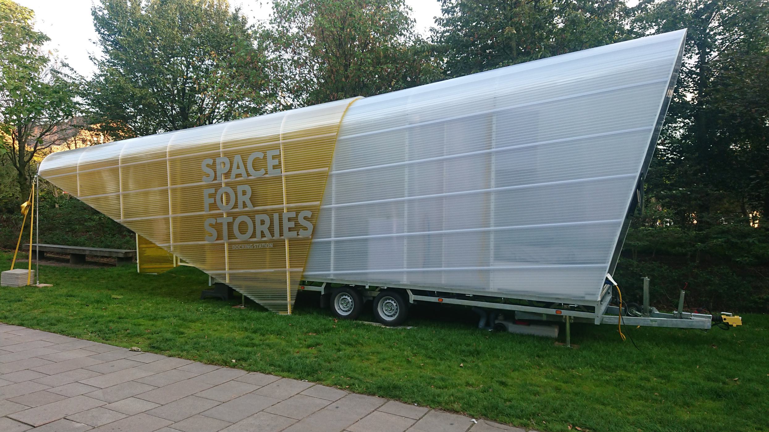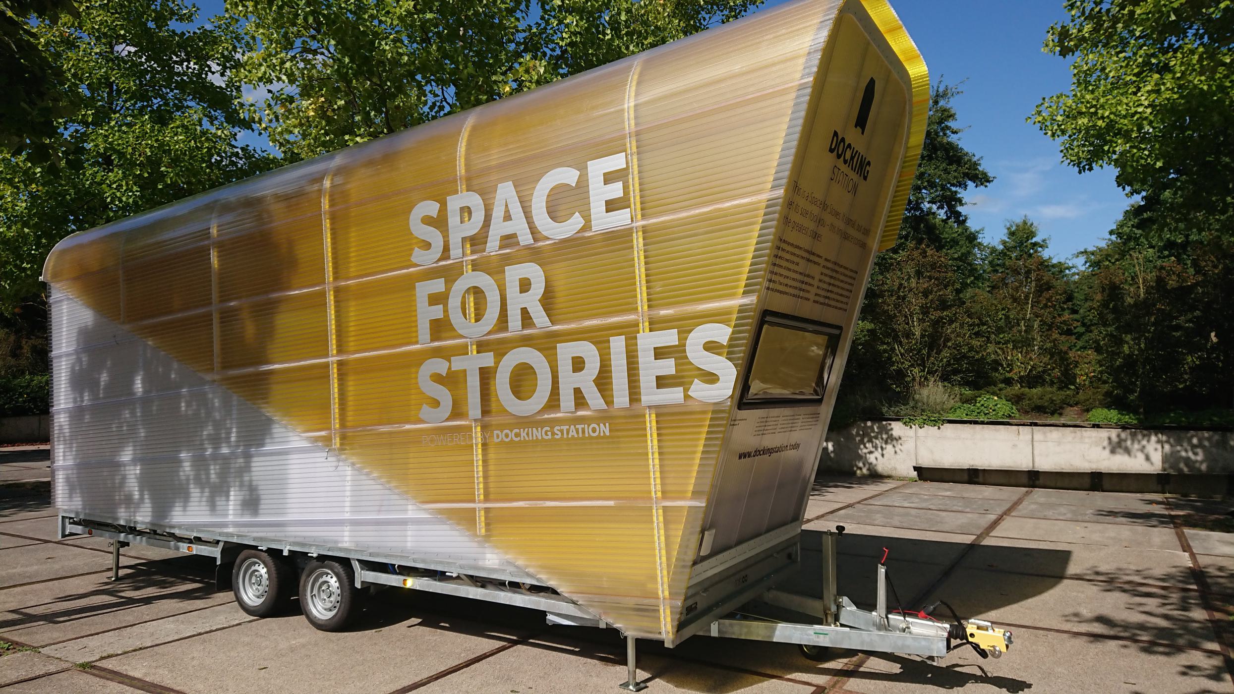 Docking Station is a platform for documentary photography. We designed a mobile artist-in-residence pavilion for them where photographers can reside for one month each. Amsterdam Westerpark is the home base for this Space for Stories, but every now and then the pavilion travels to festivals throughout the Netherlands.