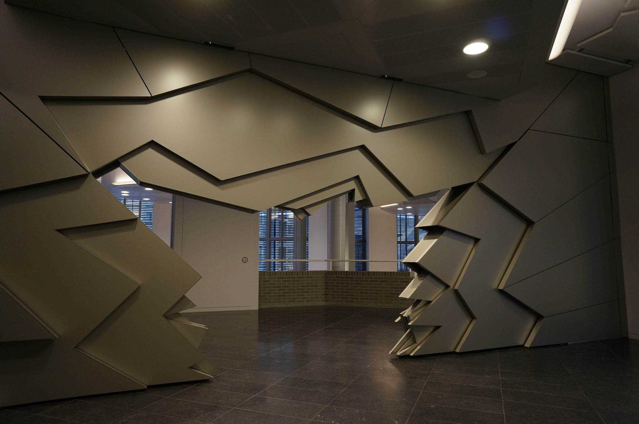 Commissioned by the Government Buildings Agency (RGD) for the Ministry of Interior."Magic door" is a sliding door operated by speech recognition; for a person that says the password correctly the artwork  will open itself. "Magic door"is made of anodized aluminum and controlled through a PLC which command the 15 frequency controlled motors. The artwork is located at a so called forbidden area and therefore not accessible to the public.
