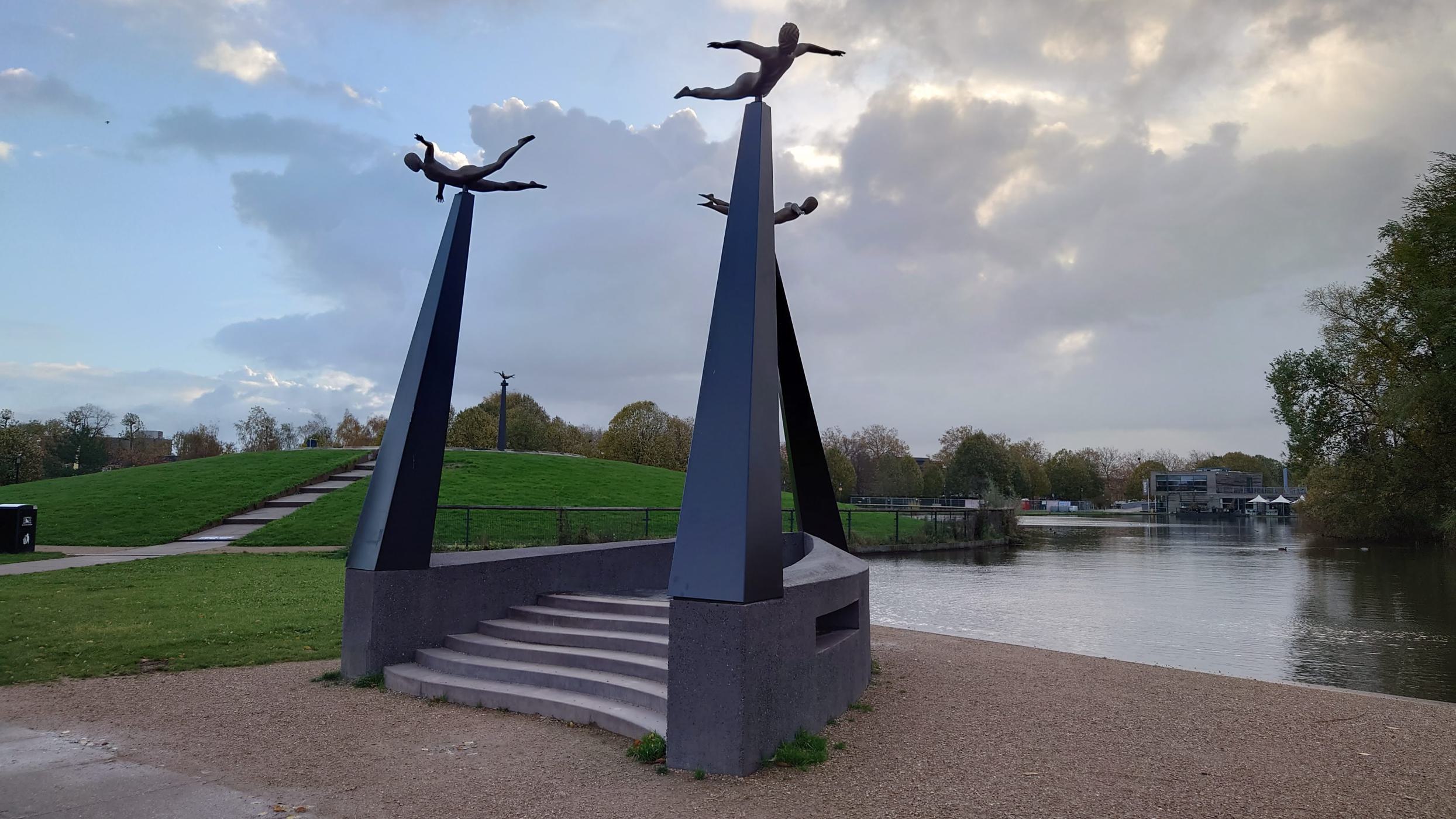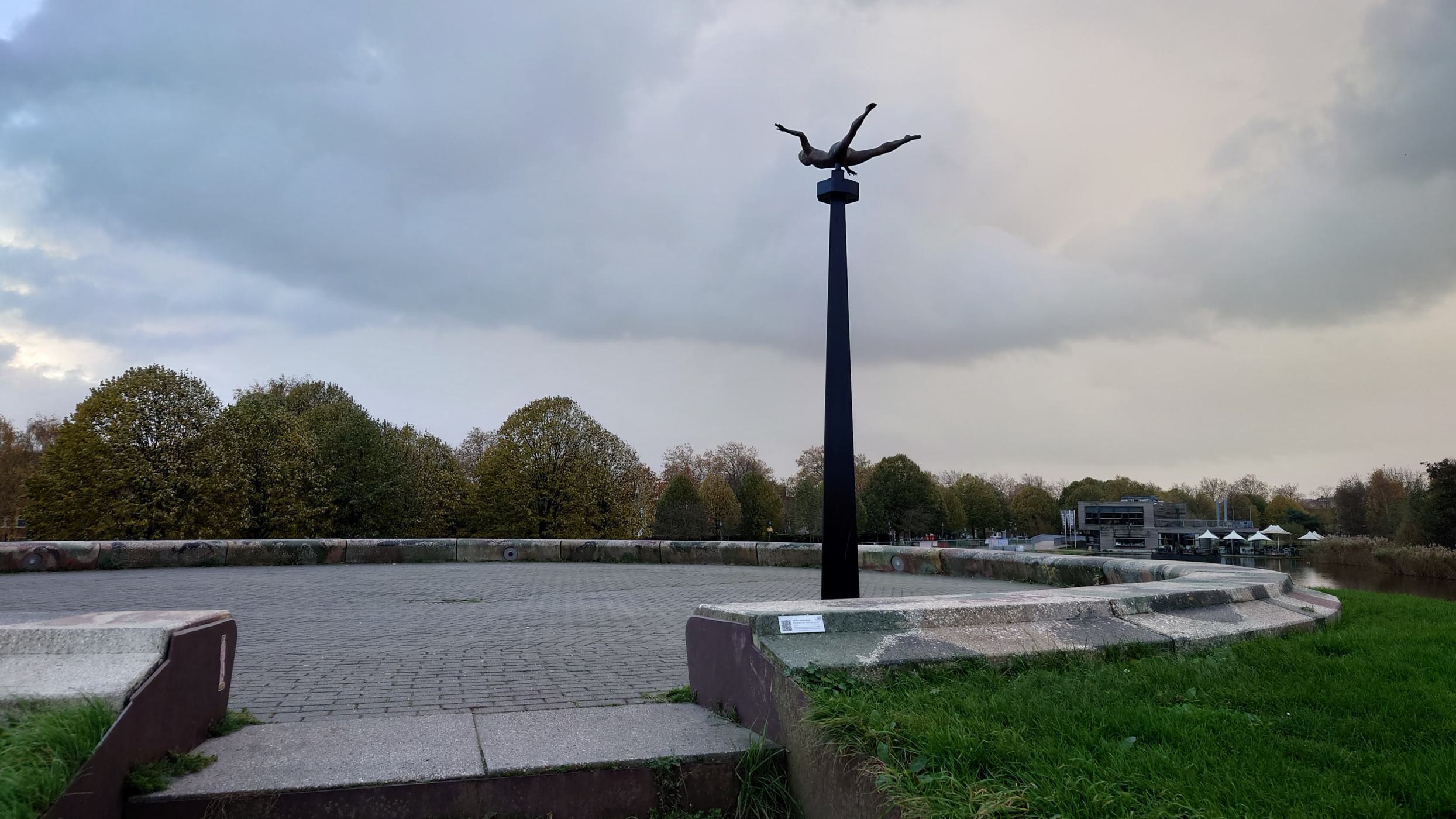 With the triangular shape, the artist refers to the triangular trade: a system of transatlantic exchange in three directions between Europe, Africa and America. The 'Flying Africans' at the top of the work are figures from an African legend who escape slavery through a magical passage back across the ocean. The hair of these figures is braided into cornrows. Cornrows were used by enslaved people to communicate with each other. On the side of the monument there are inlets to lie down in, the exact measurements of the space enslaved people had on slave ships. Hidden beneath the artwork are 20,000 kauri shells, the price of an enslaved person.