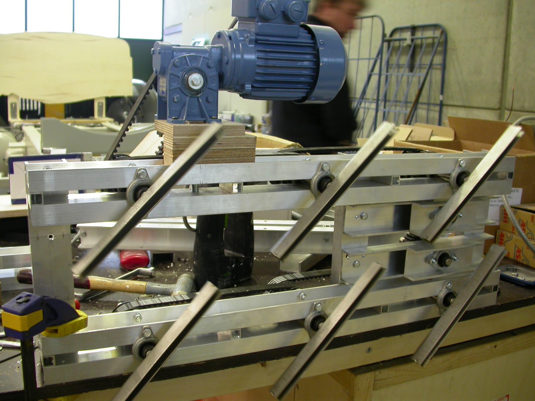 Material; aluminium, stainless steel, coloured Plexiglas, synchronized motors.