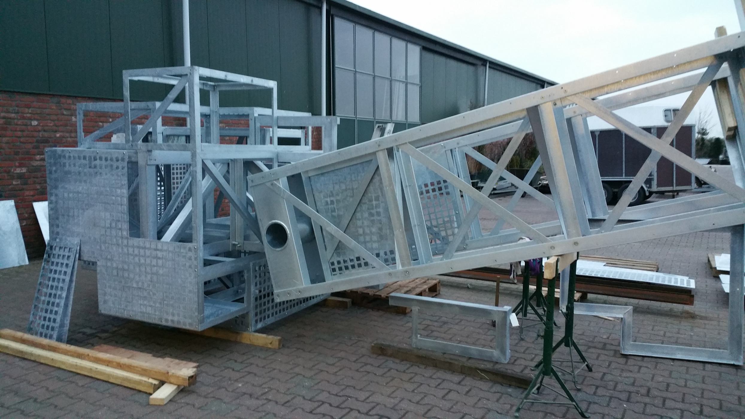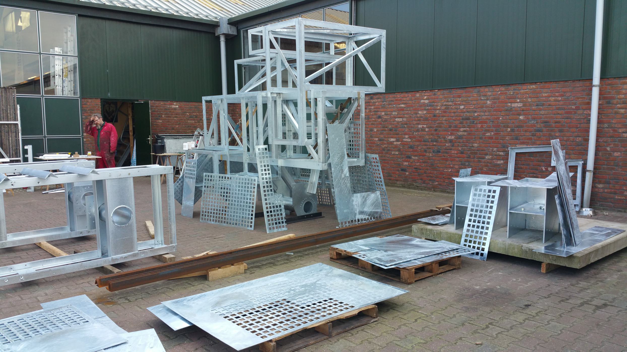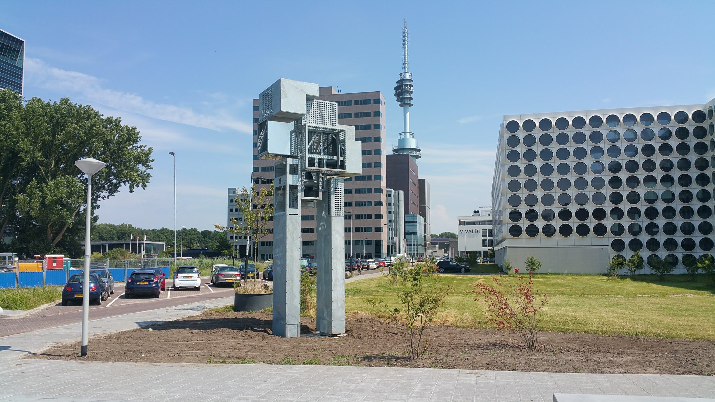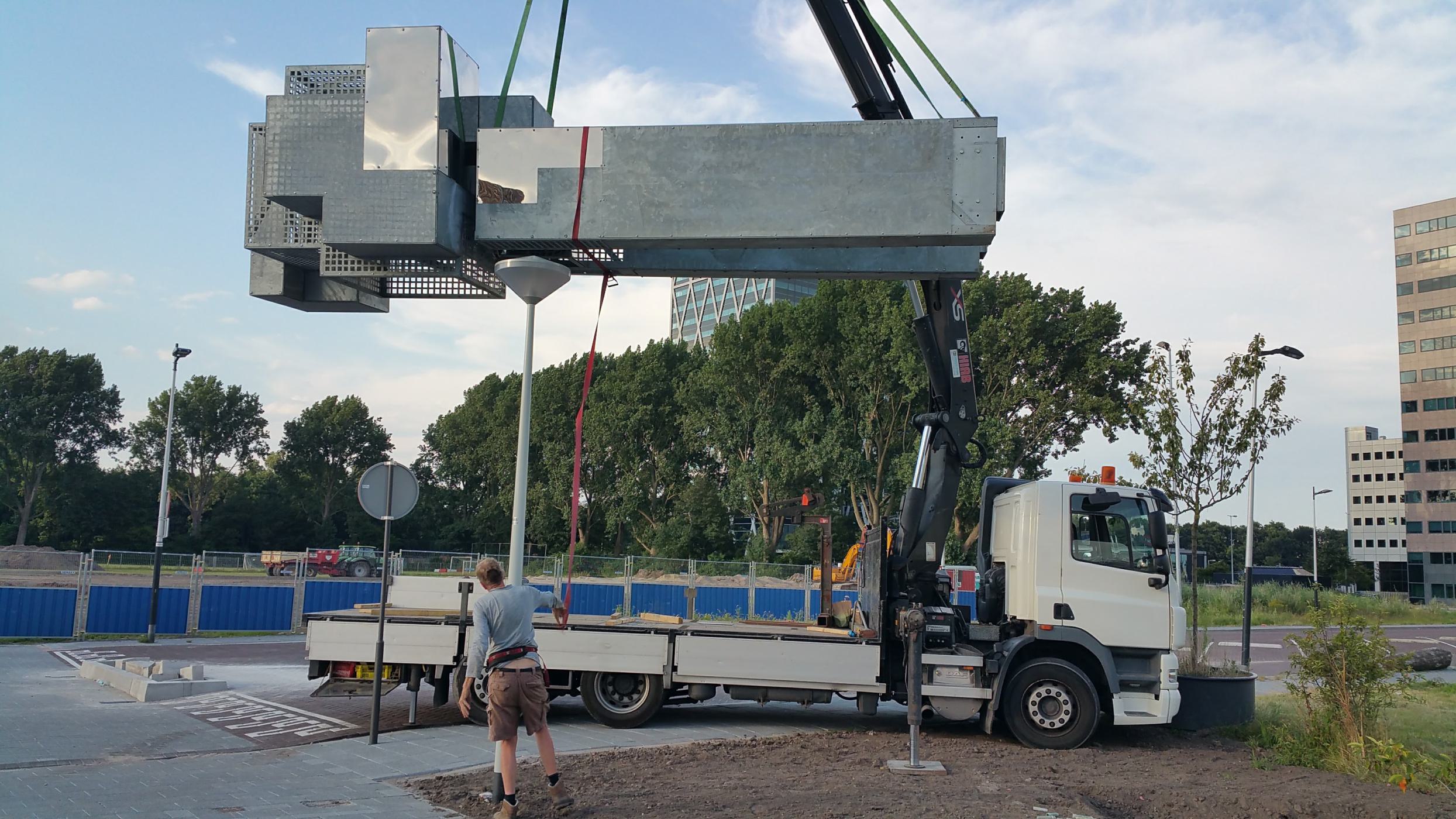 Phase 2; placement of the "Wachter" for Kindercampus Zuidas; a 7 meter high galvanised steel sculpture in public space. AisP produced and installed the sculpture temporary in 2015 waiting for its definite position.